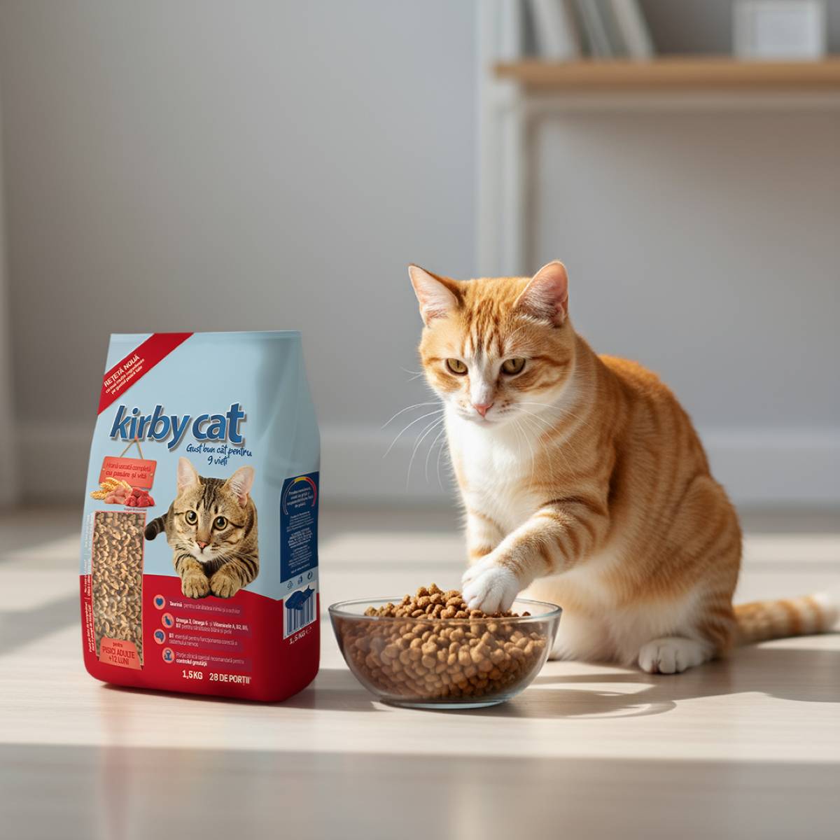 1091090435Hrana uscata pentru pisici , Kirby Cat, pasare si vita 1.5 Kg Descriere: O zi normala din viata oricarei pisici sanatoase incepe cu o alimentatie corecta. Cu o experienta de peste...